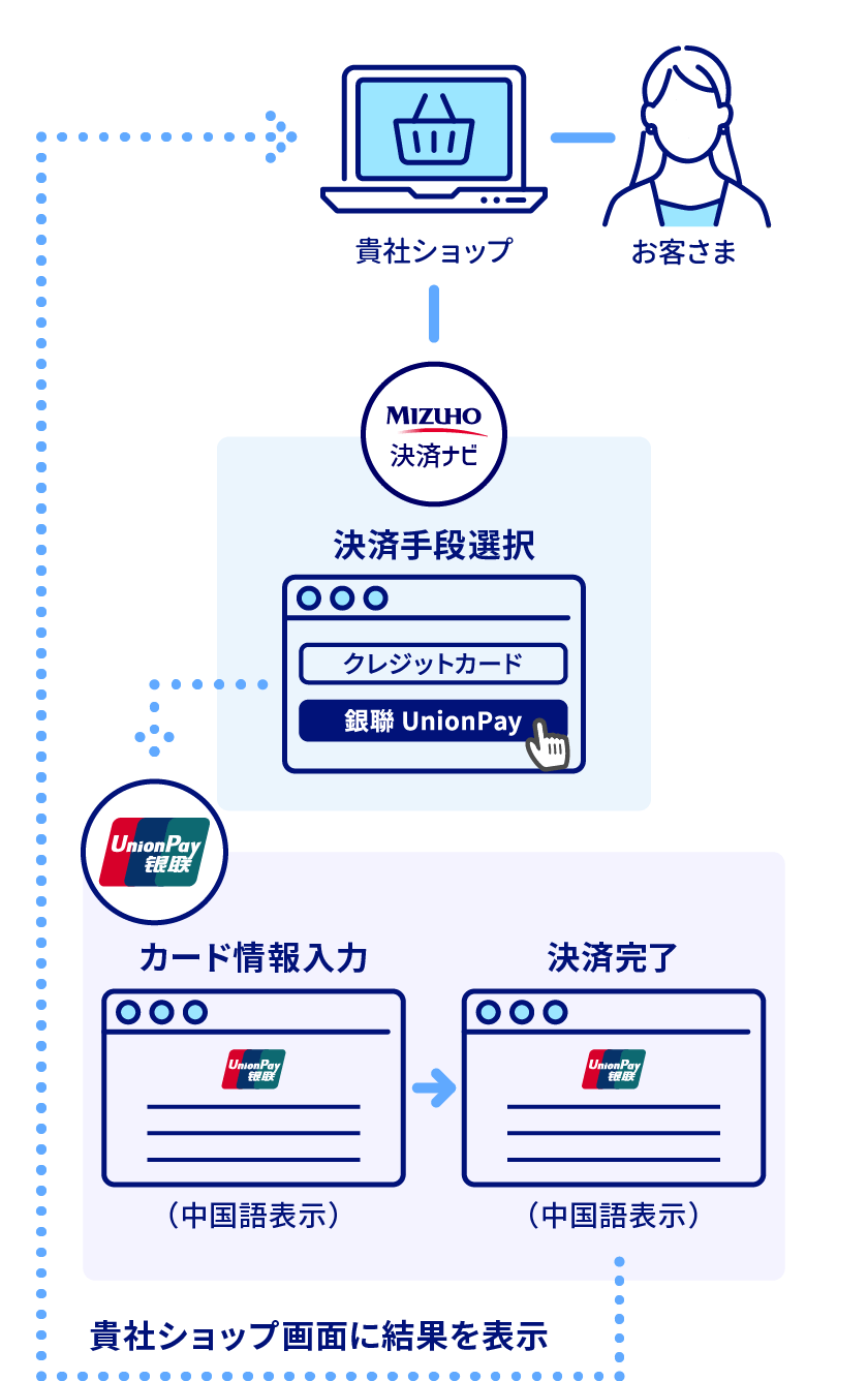 世界最大級の発行枚数を誇る銀聯カードでの決済機能をご提供。